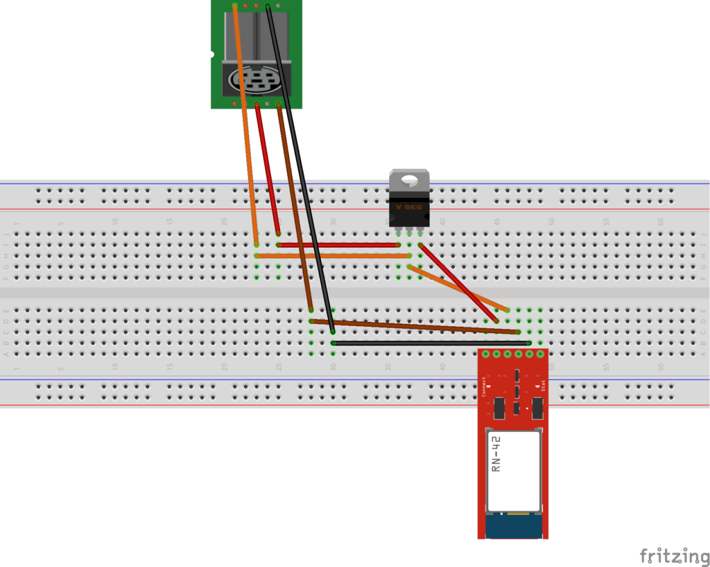 - 1 x Regulador de tensión LM7805. Para garantizar que el módulo bluetooth se alimenta con 5V interpondremos este elemento entre los pines de la Roomba y los del módulo.